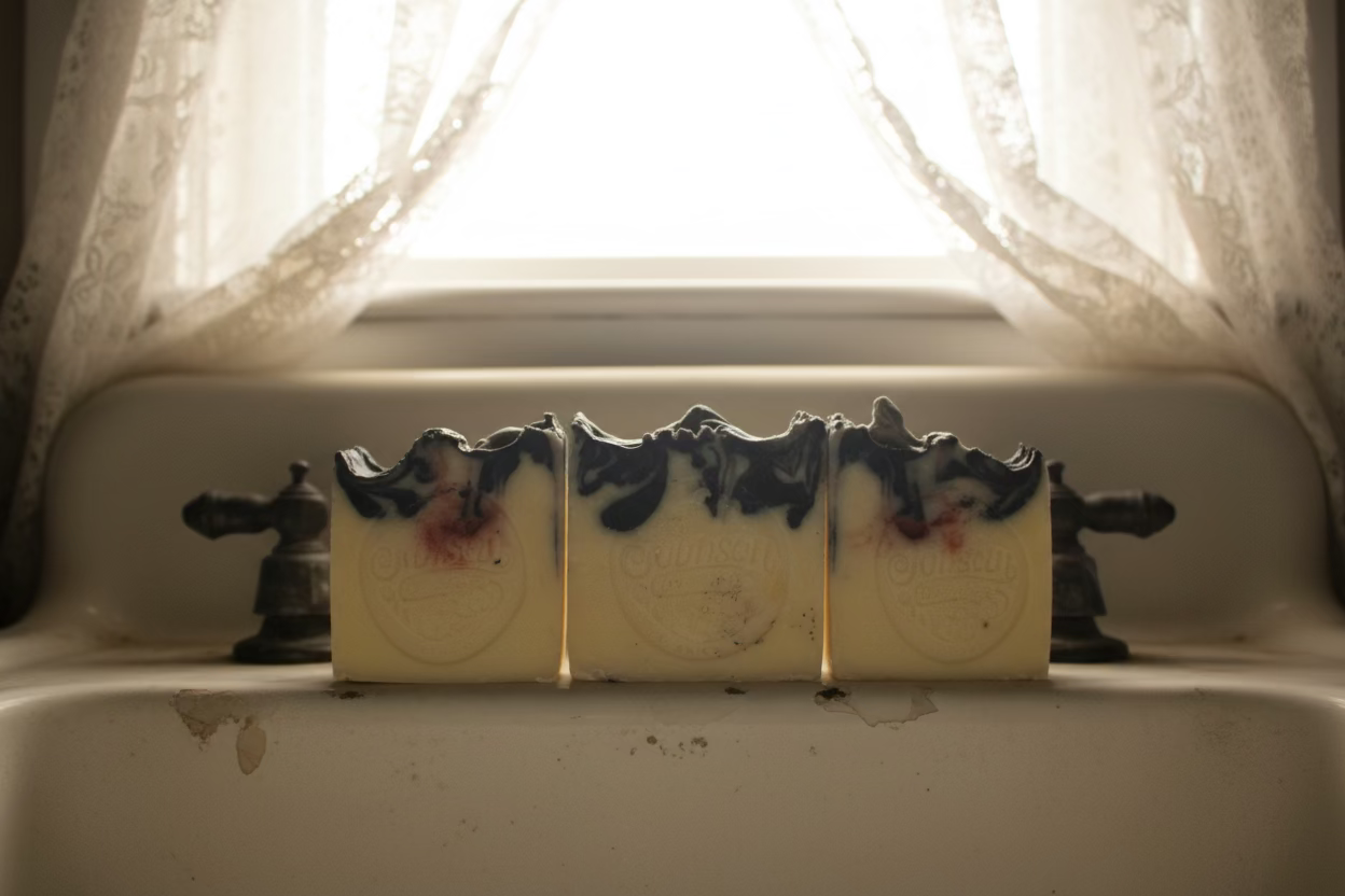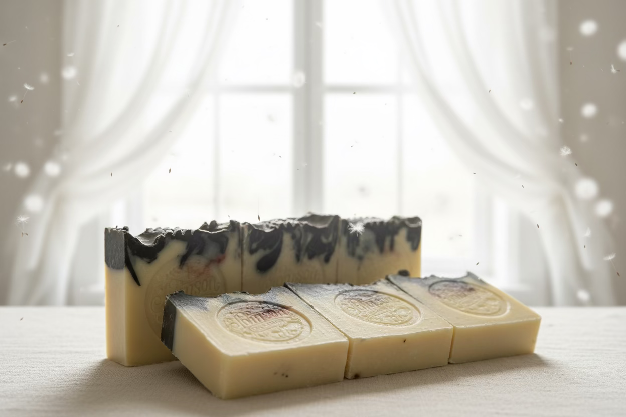 Castor oil boosts the bar’s creamy, luxurious lather while drawing impurities from the skin and supporting a thorough cleanse. Coconut oil provides natural cleansing power and contributes to a firm, long-lasting bar, while olive oil delivers deep hydration, antioxidants, and soothing properties that help calm irritation and support skin repair.